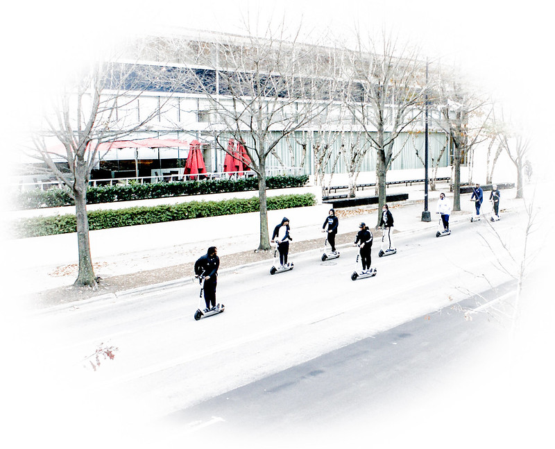 Today’s photo shows a common scene in uptown Charlottes. Electric scooters are everywhere. From a personal perspective I would prefer a few less scooters and a lot more observance of the rules. But at the same time I enjoy the smiles on the faces.