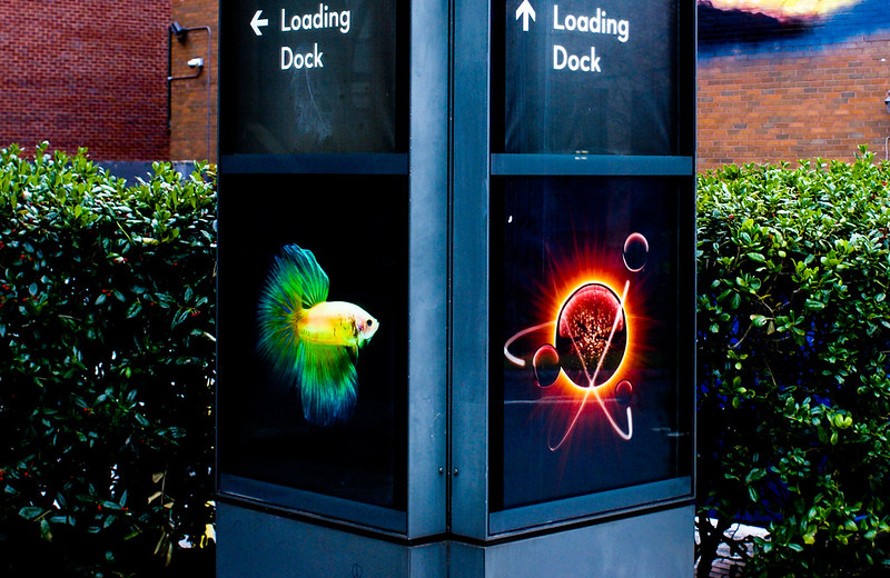 We are continuing our mini-series with a focus on yellow. Today’s photo shows a yellow tropical fish on the Discovery Place loading dock in uptown Charlotte. The Discovery Place web site says their mission is to “Bring science, nature, and design together to create transformative experiences that enable our community to understand, enjoy, and apply science to their lives.” The fish fits the mission statement and it fits my yellow theme.