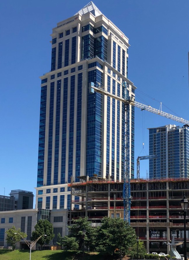 This office tower is a recent addition to the Charlotte skyline. During construction the signs referenced Legacy Bank, then recently the building name was changed.