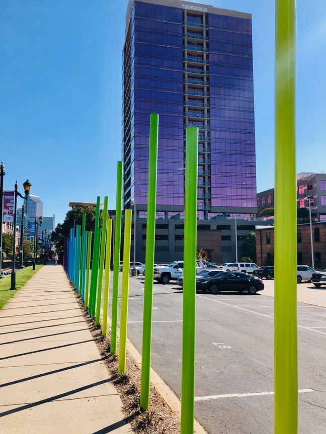 Today’s photo shows artwork along the Rail Trail near Uptown Charlotte. A plaque says that the artist, Toth Depena, was inspired by motion activation of a static sculpture.