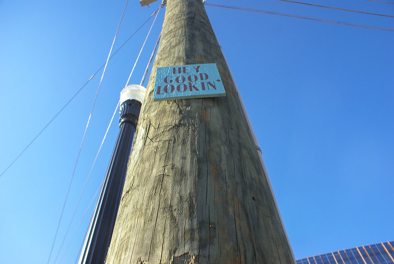 Today’s photo is a simple snap of a sign which caught my eye. The sign was found in the South End which is close to uptown Charlotte. There are many and small touches such as this sign. There is a “discovery around every corner”
