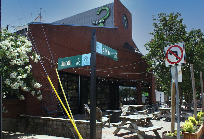 What caught my attention was the question mark at the top of the building. Then I noticed that the name of the business is The Unknown Brewery. So the question mark makes sense. Also, note that the outdoor tables and the lights make this an appealing spot to enjoy a beer on a hot summer evening.