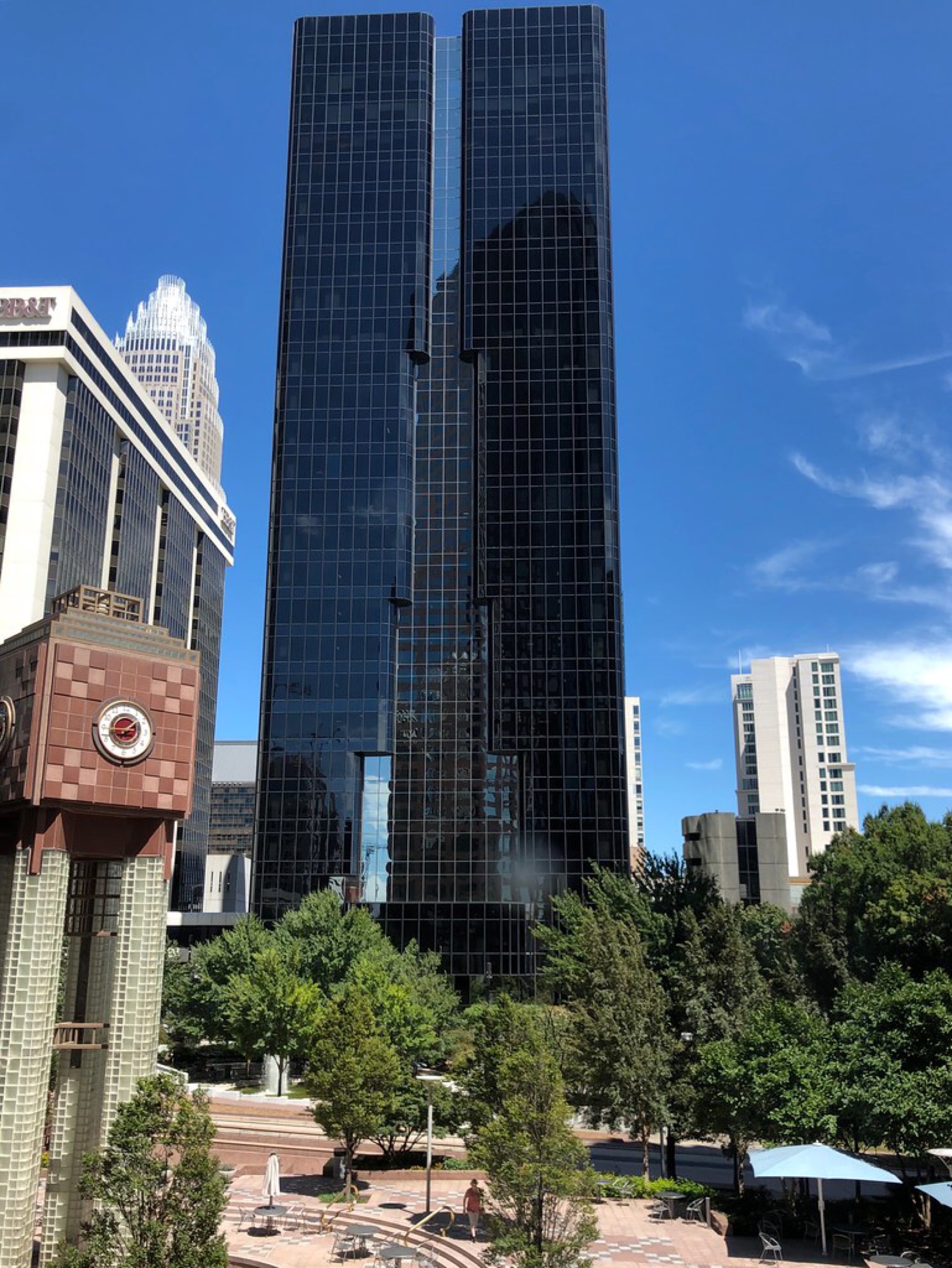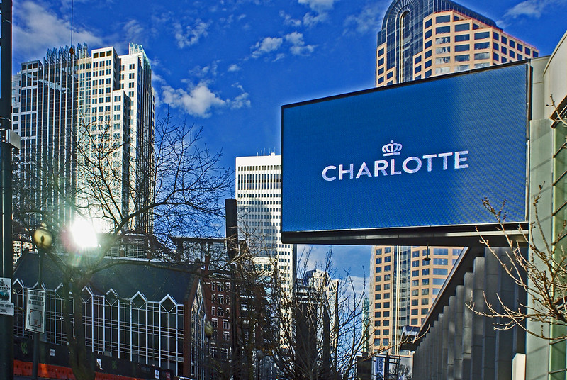 Today’s photo shows a sign at the Charlotte Convention Center. With the help of photoshop I played with the camera distortion to highlight the sign. The three tall office towers (from left to right) are Three Wells Fargo Center, Two Wells Fargo Center, and One Wells Fargo Center.