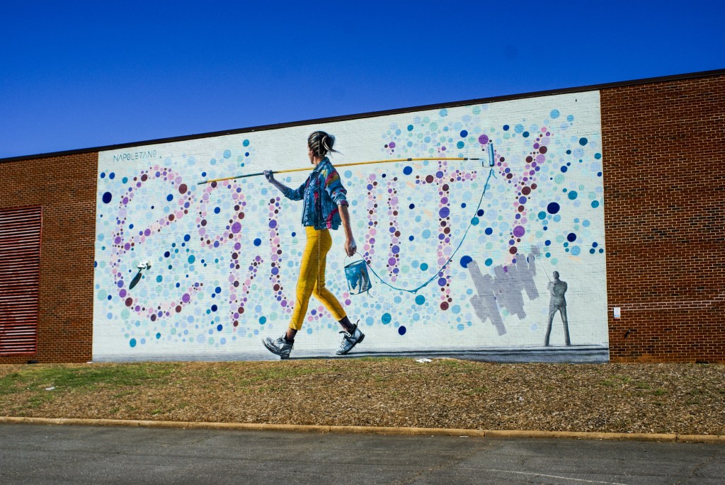 Note that the mural was created by Nick Napoletano. Nick signs his murals as @NAPOLETNOART.