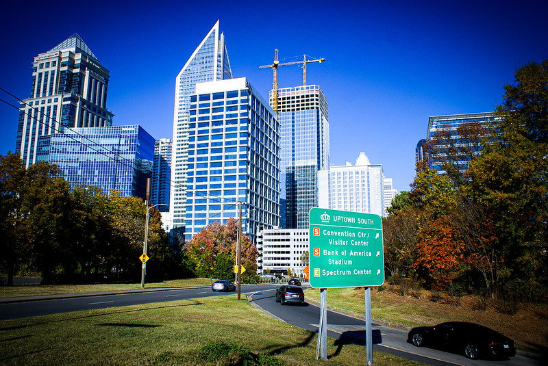 Interestingly only one of the buildings shown was present eight years ago when we moved to uptown Charlotte.. The tallest building, called the Duke Energy Center, was present eight years ago and was were I first went to work in Charlotte. Our condo complex is 1/2 of a block past the two construction cranes. Past our condo there was a similar construction boom, of mid-rise apartments next to the Charlotte baseball stadium and the Romare Bearden Park. There is also construction underway in Uptown North not shown in this photo.