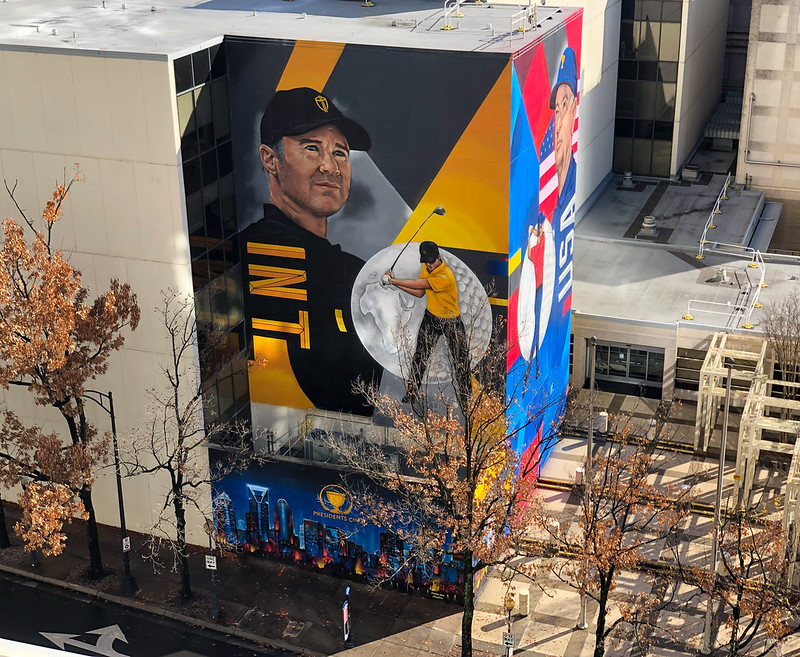 Following is link to the President’s Cup website. Also, we are sharing a link to the original of today’s photo saved on Flickr with the caption: Mural advertising the President’s Cup golf tournament to be held in 2022.