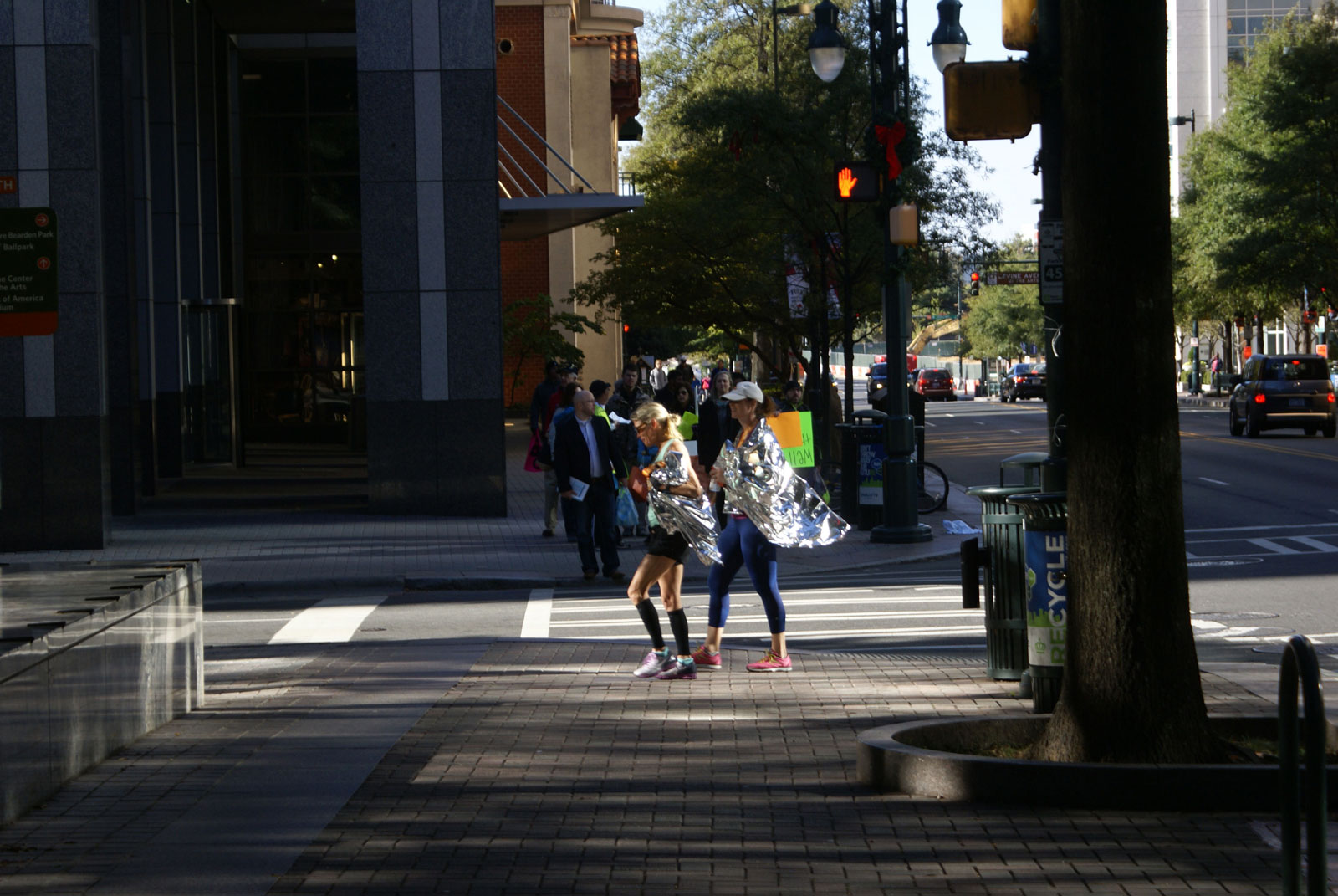 A mural awash in the evening sun. This scene was found in uptown Charlotte. The mural is an advertisement for the Presidents Cup Golf Tournament to be held in 2022.