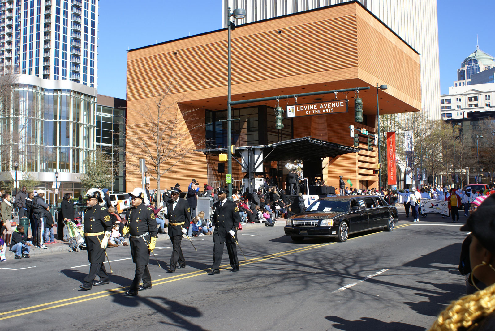 This photo was taken at the intersection of South Tryon and Levine Avenue of the Arts. Here is a link to the MLK Parade facebook page.