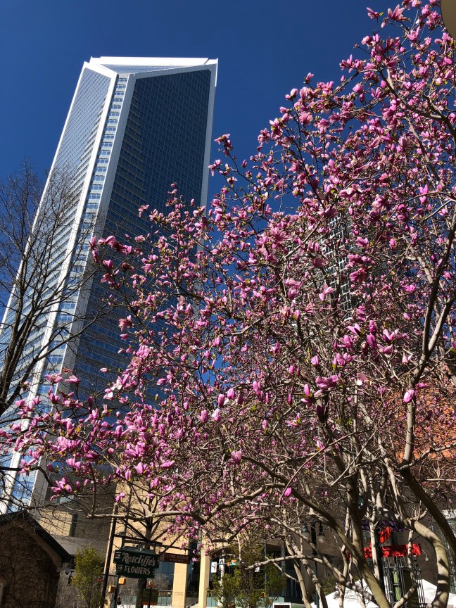 I took this photo because I liked the contrast of shadows and sunlight. The red brick building, in the background, sits behind Saint Peters Catholic Church and as you can see the building has a modern “church architecture“.