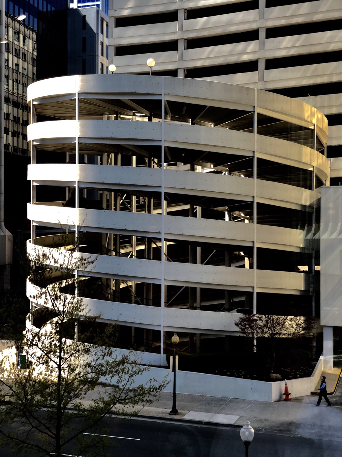 This is a much more common scene than the street scene shown yesterday. Today’s photo shows, parking on the side streets with a mix of industrial and new construction. Also the flowering trees are common. As are the one way streets :)