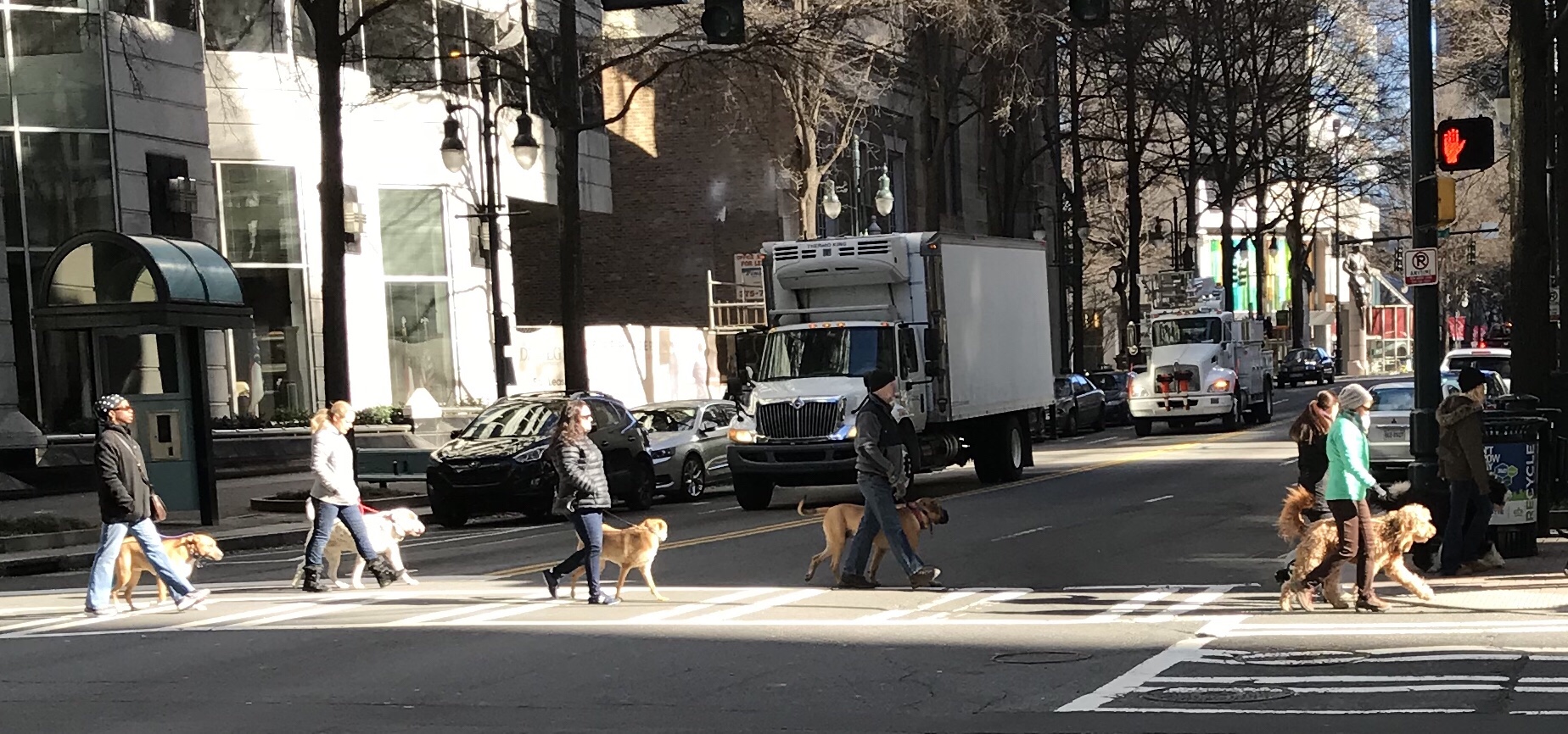 Today’s photo shows a Panthers fan along with his dog. Today was game day for the Panthers and there were large crowds in uptown. I tried to avoid the crowds but was able to snap this photo. There was tailgating, jerseys from both teams, and lots of people enjoying the day.