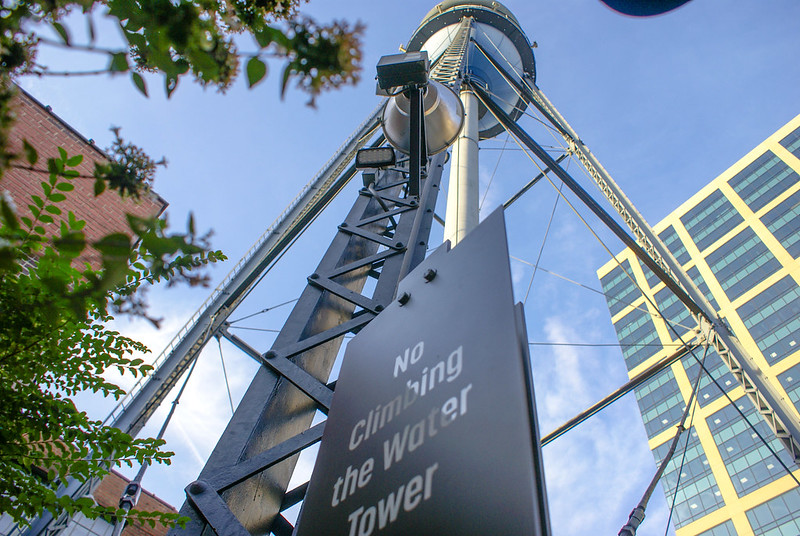 We continue our blue theme as we look toward uptown Charlotte. Given the photo was taken as I walked across the light rail track (at an official crossing), the photo makes me think this must the the prospective the train conductors see daily.
