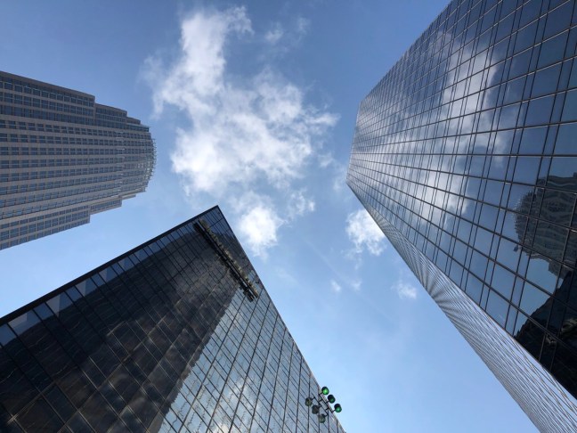 This prospective shows (from left to right) the Bank of America Center, Omni Hotel, and Bank of America Plaza.