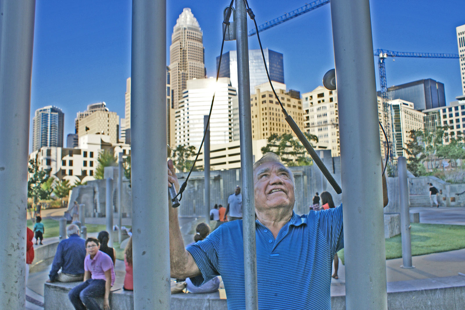 We enjoy watching the children playing in the waterfalls at Romare Bearden Park in Uptown Charlotte.